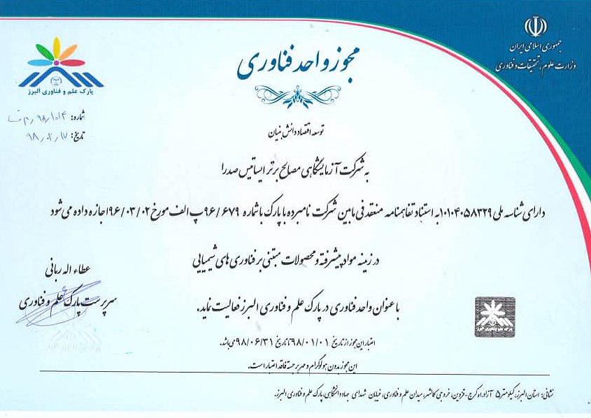 🏆 عضو پارک علم و فناوری البرز بعنوان شرکت فناور |